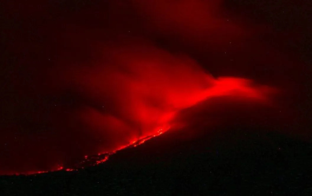 Luncuran lava pijar Gunung Lewotobi Laki-Laki terlihat dari Desa Nurri, Ile Bura, Kabupaten Flores Timur, NTT, Minggu (14/1/2024). Foto : Istimewa